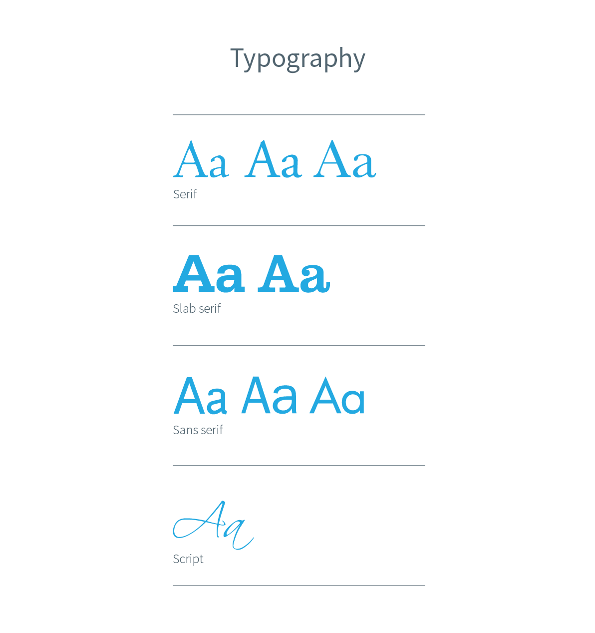 You don't have to know exactly which font you want to use on your next design piece as long as you have these terms handy, you and your designer can be on the same page.